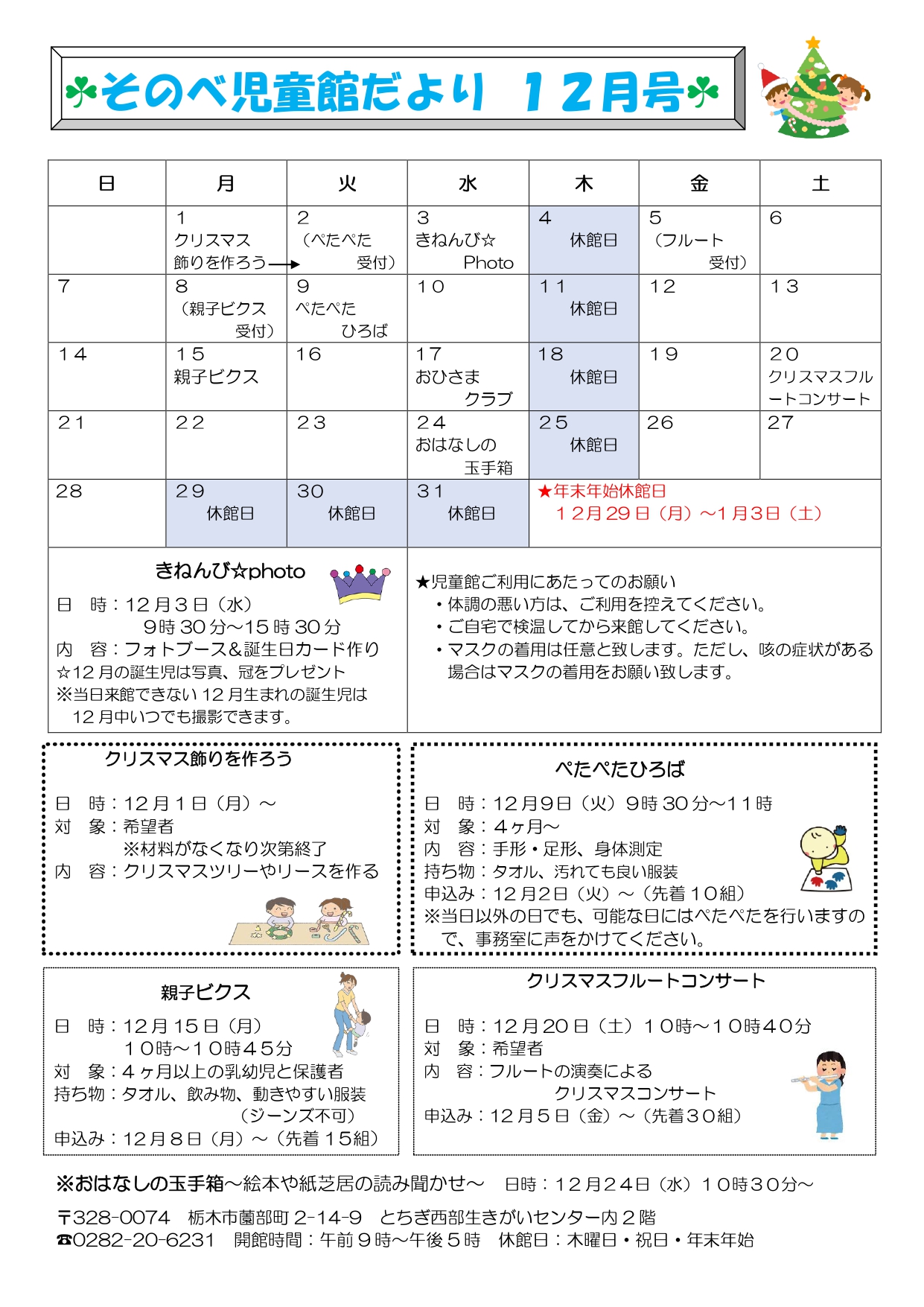 『そのべ児童館だより 12月号』をお知らせいたします。