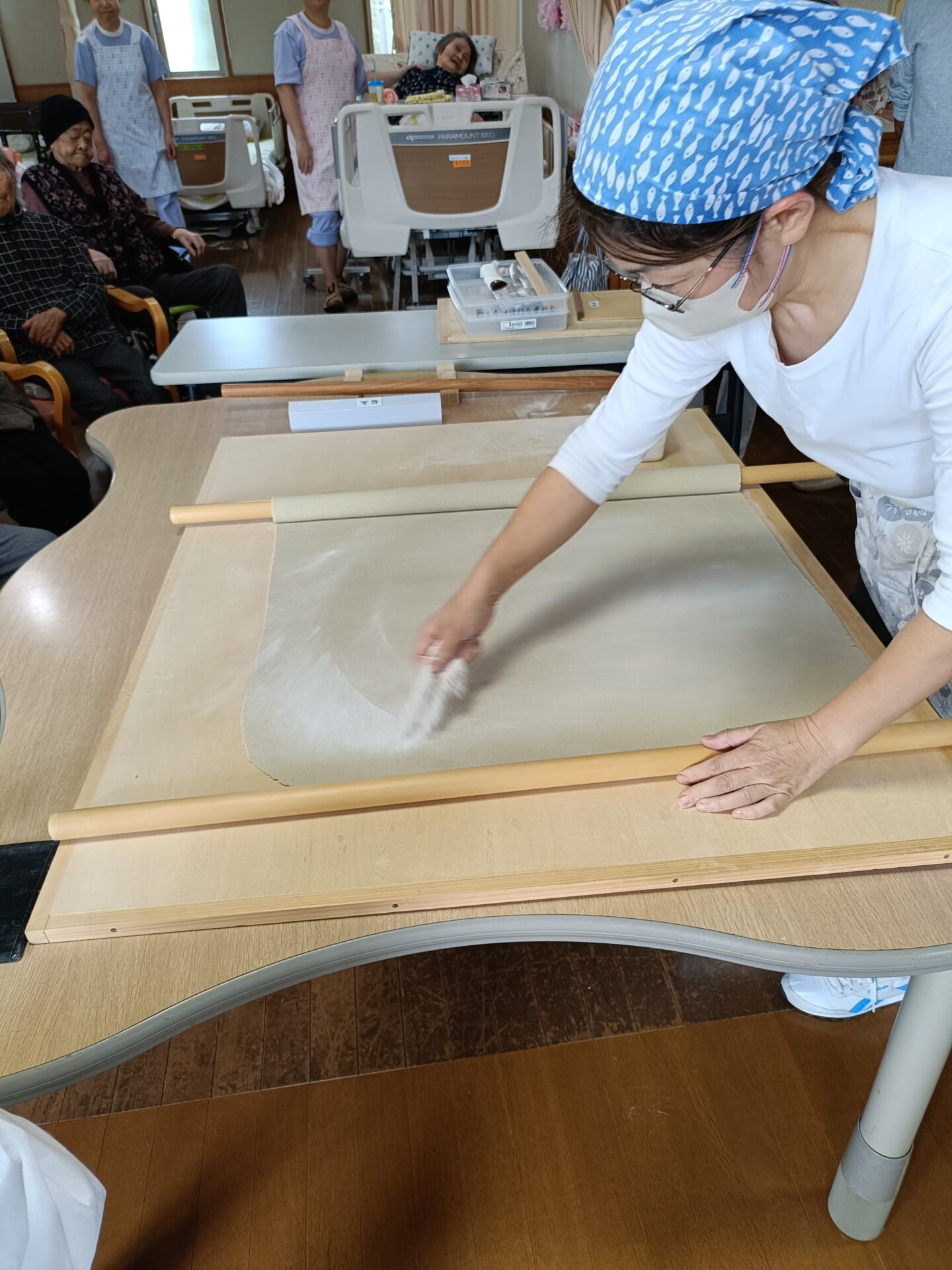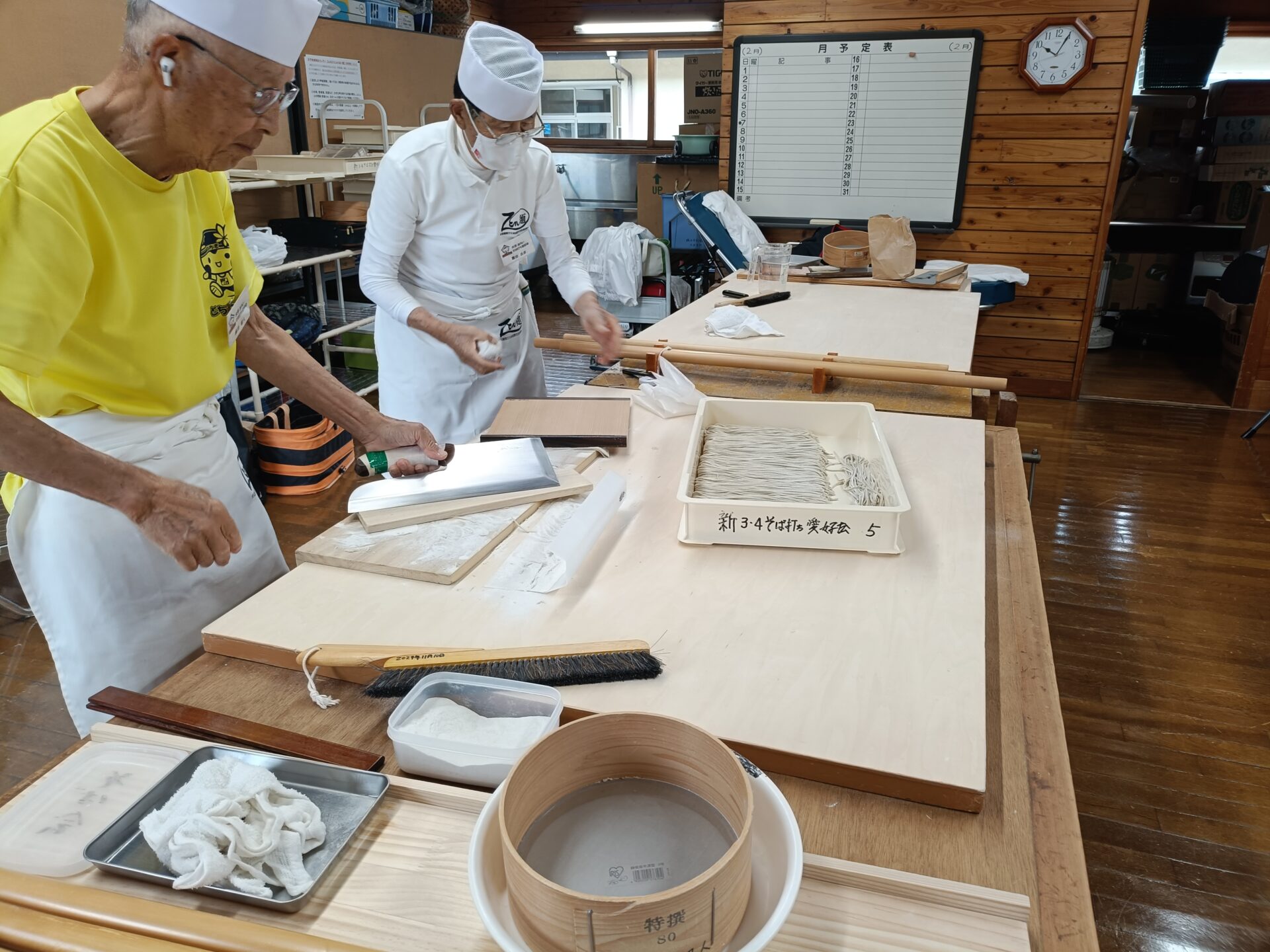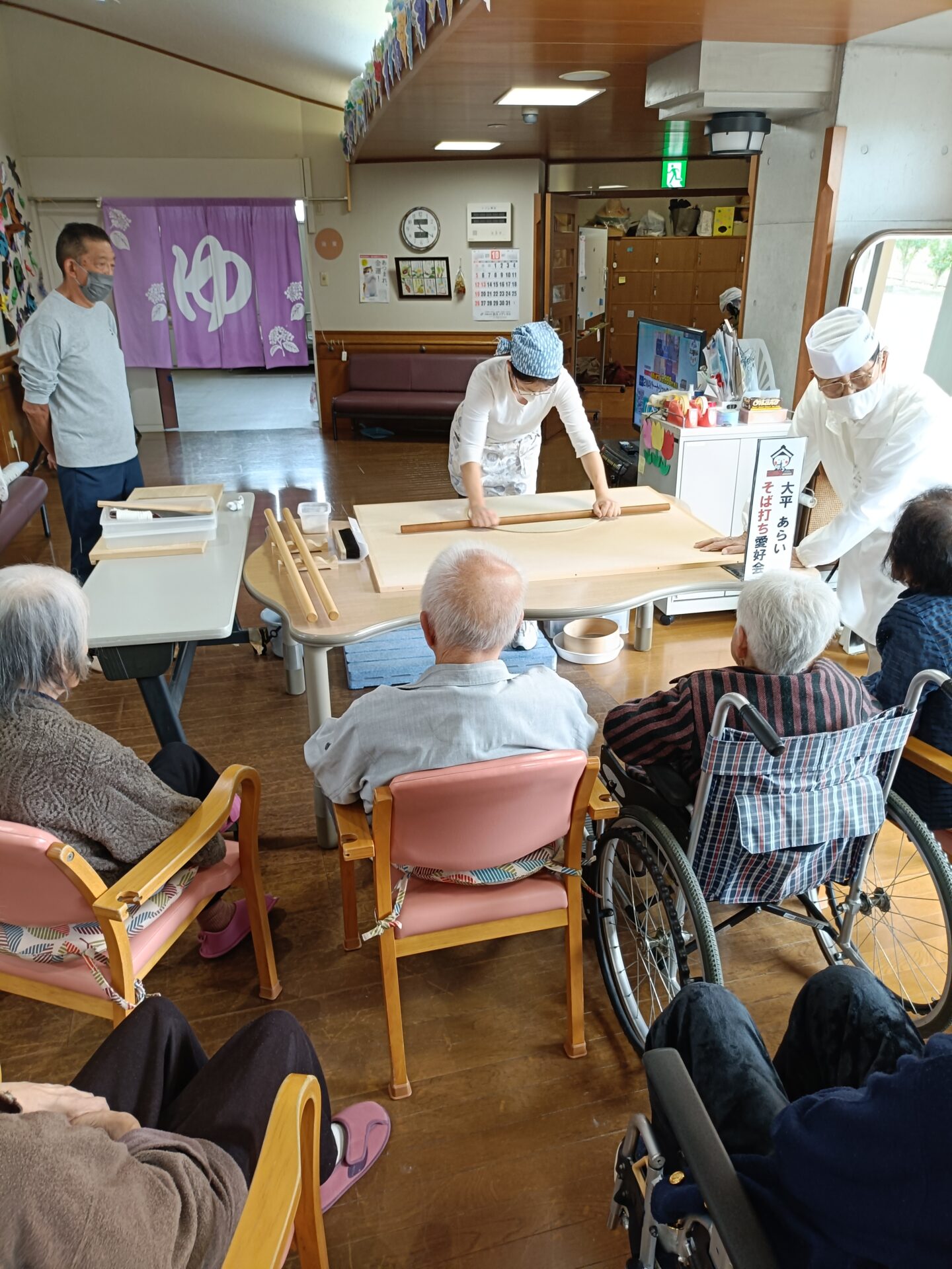 去る10月20日(月)、大平高齢者デイサービスセンターまゆみにて、「大平あらいそば打ち愛好会」のみなさんによる手打ちそばが振る舞われました。